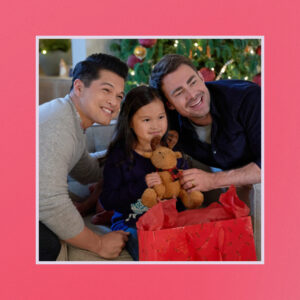 Why you should watch it: Jonathan Bennett as Sam, a New York City uncle with an extreme fear of children, is…a stretch. He’s not just out of place in the holiday festivities, he feels out of place on planet Earth. But George Krissa as Jason, the gay handyman neighbor, is full Disney Prince handsome, and my bags are packed to move to this fictional suburban town immediately. The premise does feel refreshingly modern for Hallmark: Sam’s sister and her husband have to leave town immediately because the baby they’re’s adopting is about to be born. Meanwhile, Jason is also navigating the adoption process himself. It’s rare to see queer parenthood in a holiday rom-com. While the romance feels a bit rushed and forced, the payoff is so satisfying.