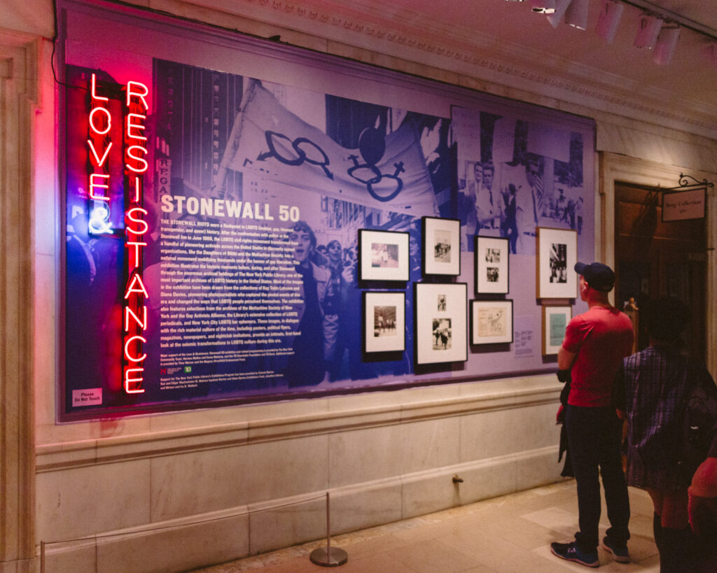 The Love & Resistance: Stonewall 50 exhibit is on display at the Stephen A. Schwarzman Building until July 14, 2019.